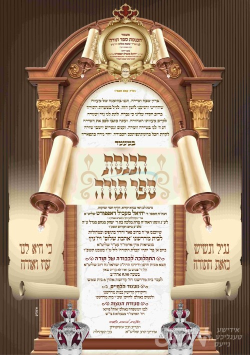 היינט קומט פאר די מעמד הכנסת ספר תורה וואס ווערט אריינגעגעבן צום ביהמ"ד אהבת שלום וויזניץ אין בית שמש, נדבת הרב החסיד ר' מיכל ראפאפארט הי"ו פון בארא פארק.