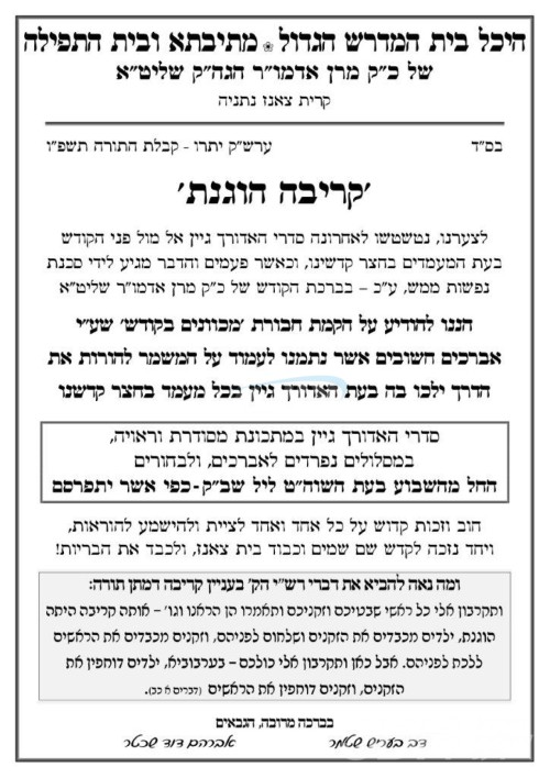 דעריבער שטעלט מען אוועק דעם נייעם וועד "חבורת מכוונים בקודש", וואס וועלן זיין פאראנטווארטליך אויסצוארבעטן די פונקטליכע סדר וויאזוי אויסצושטעלן דאס אדורכגיין ביים רבי'ן, צו וואונטשן א גוט שבת, גוט יו"ט, און ביי אנדערע געלעגנהייטן, און סיי ווען מען גייט אריבער ביים רבי'ן פאר סיי וועלכע סיבה, מיט א ספעציעלע אויסשטעל פאר די אינגעלייט, די בחורים, די עלטערע אידן, און אזוי ווייטער.