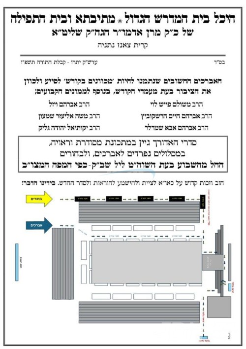 אין א ספעציעלע מודעה אונטערגעשריבן דורך די משמשים בקודש הרב אברהם דוד שעכטער הי"ו און הרב בערל שטעמער הי"ו, שרייבן די גבאים אז לעצטנס זעט מען ווי דאס אריבערגיין בפני הקודש שטויסט זיך אן מיט שווערע פראבלעמען און שטופענישן, און עטליכע מאל איז עס שוין צוגעקומען צו א מצב פון סכנת נפשות ממש.