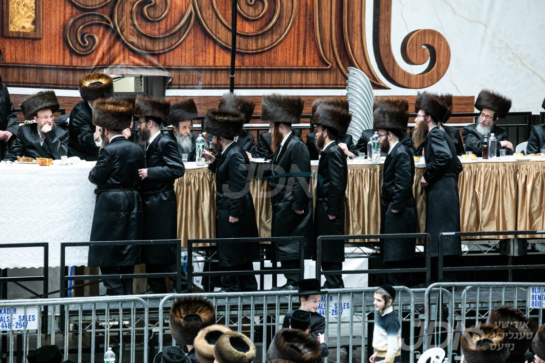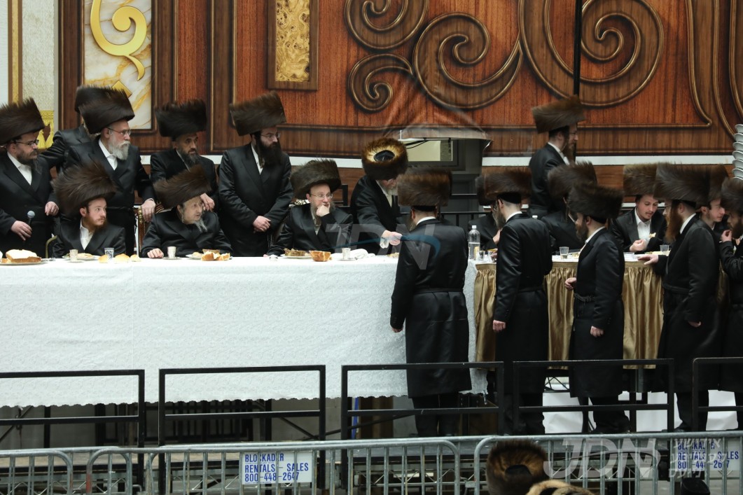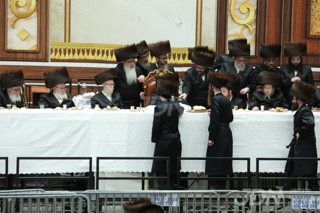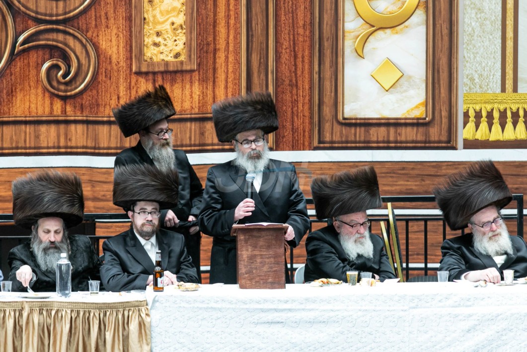 נאך די הכרזה ביים צענטראלן שמחת השבע ברכות, זענען די אכט דיינים מומחים ארויפגערופן געווארן אויפן בימת הכבוד, וואו כ"ק אדמו"ר מסקווירא שליט"א האט געוואונטשן לחיים און זיי ווארעם אנגעוואונטשן הצלחה און סייעתא דשמיא אויפן נייעם תפקיד.