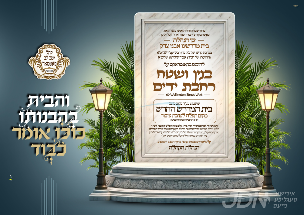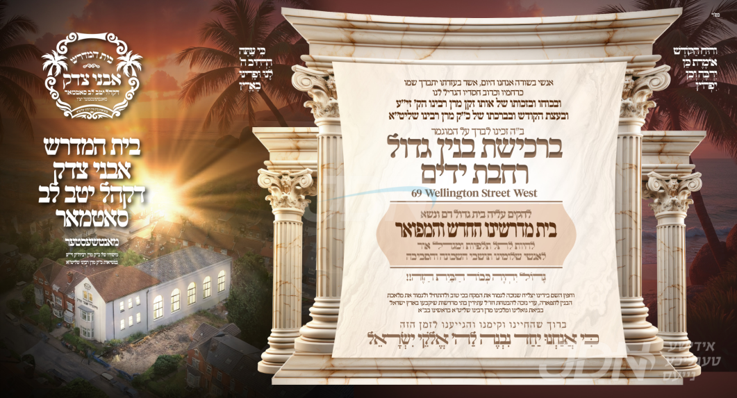 ווידער פריידט מען זיך בחצר הקודש סאטמאר מיט די ווייטגרייכנדע הרחבת גבולי הקדושה אינערהאלב קהילות ומוסדות סאטמאר אלוועלטליך, דאסמאל מיט די שטארקע פארשריט פון די קהילה אין מאנטשעסטער, וואו מען האט אין די יעצטיגע טעג אפגעקויפט א פרישן בנין אלס אכסניא של תורה ותפילה, פארן ביהמ"ד אבני צדק דקהל יטב לב ד'סאטמאר.
