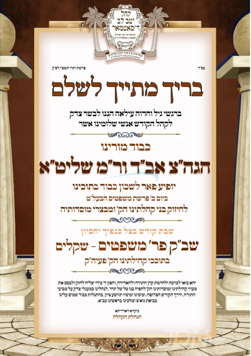כ"ק אדמו"ר מטעמעשוואר שליט"א איז צוגאסט אויף דעם שבת אין בארא פארק, די תפילות און טישן קומען פאר אין ביהמ"ד נעימת החיים.
