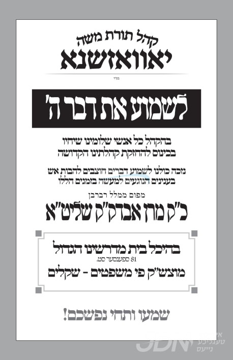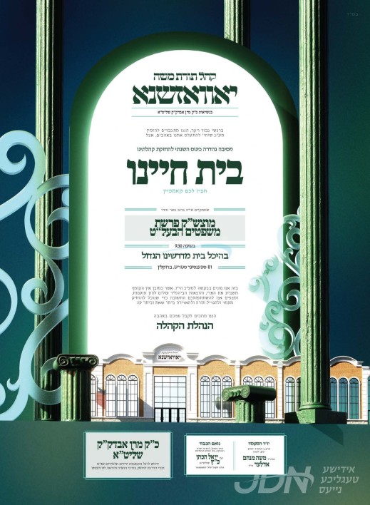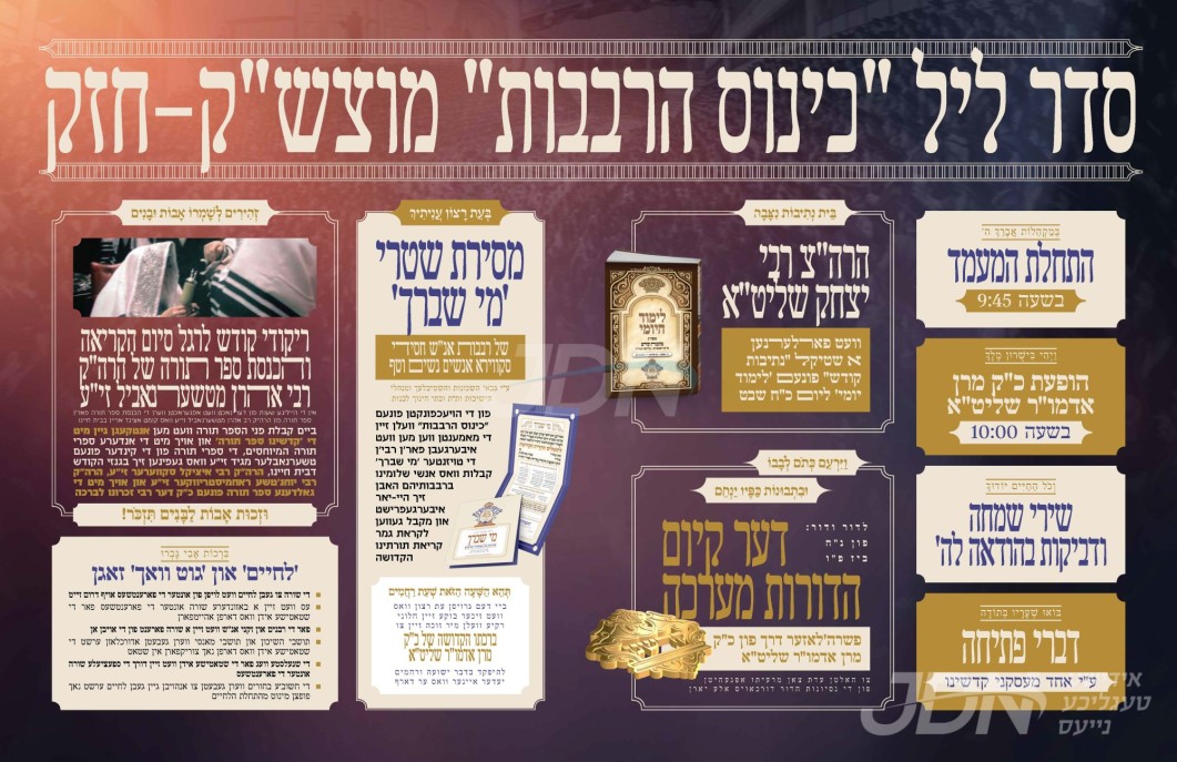 היינט קומט פאר די יערליכע מלוה מלכה און כינוס התלמידים שע"י קהל תורת משה יאוואזשנא אין וויליאמסבורג, די מעמד קומט פאר אינעם גרויסן היכל ביהמ"ד אויף ספענסער אין שפיץ פון הגה"צ גאב"ד יאוואזשנא שליט"א.