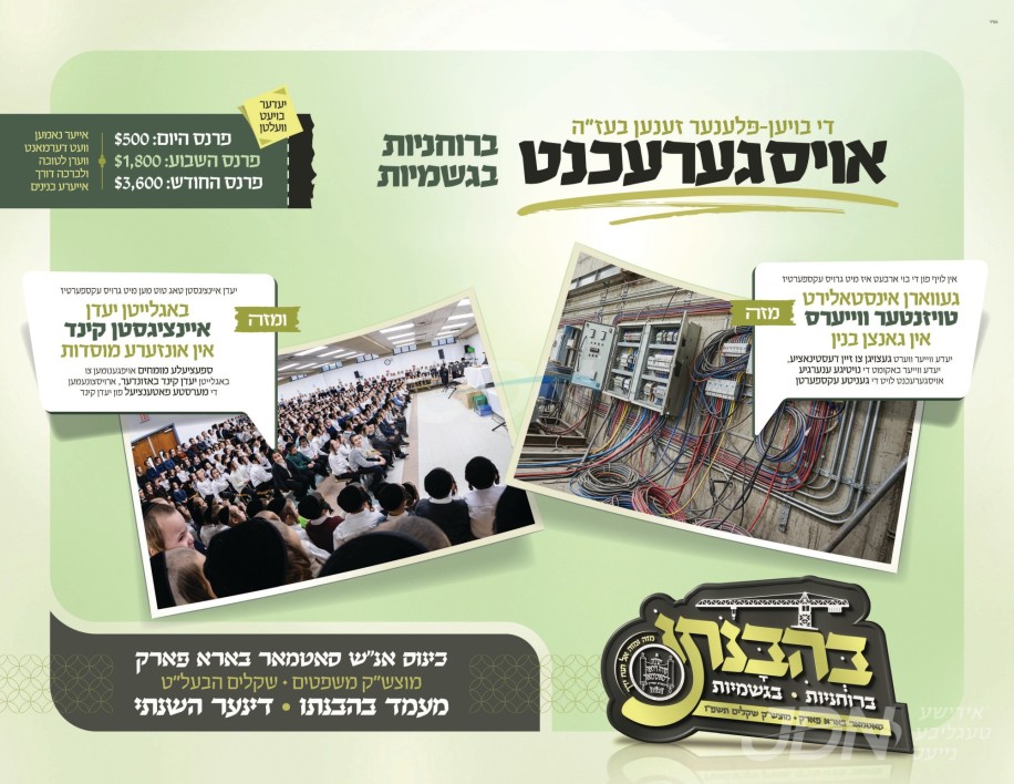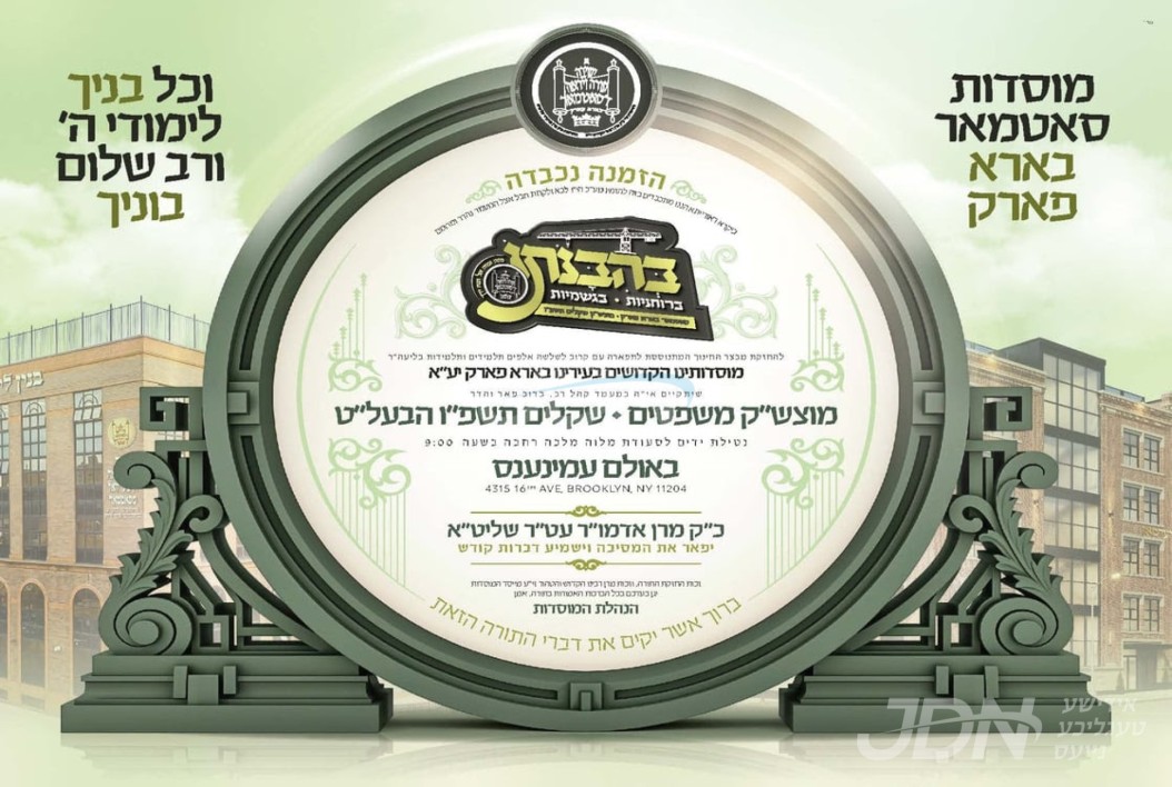 היינט קומט פאר די יערליכע מלוה מלכה "בהבנותו" לטובת מוסדות סאטמאר אין בארא פארק, אין שפיץ פון כ"ק אדמו"ר מסאטמאר שליט"א.