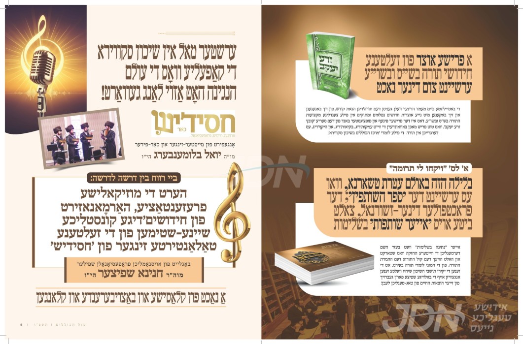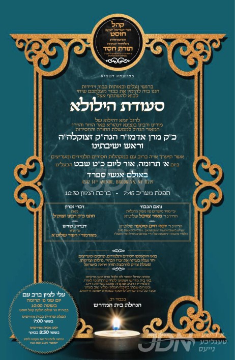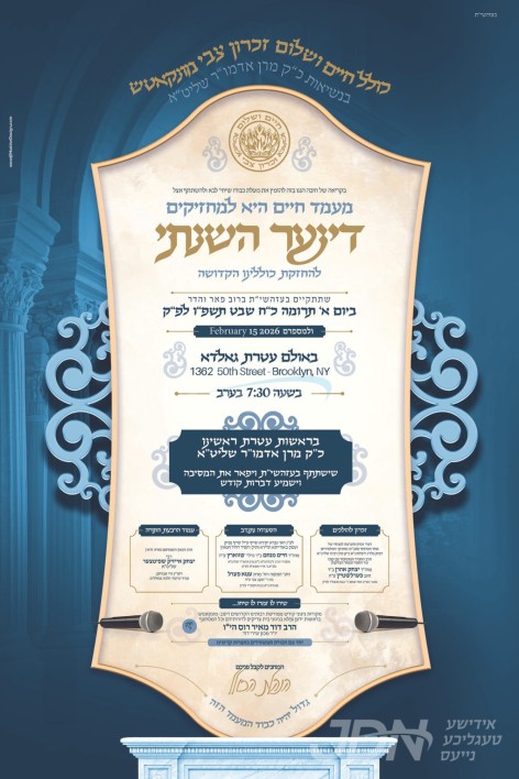 היינט קומט פאר די יערליכע דינער לטובת כולל חיים ושלום זכרון צבי מונקאטש, אין זאל פון עטרת גאלדא אין בארא פארק, אין שפיץ פון כ"ק אדמו"ר ממונקאטש שליט"א.