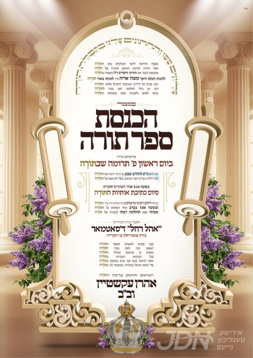 היינט קומט פאר די מעמד הכנסת ספר תורה וואס ווערט אריינגעגעבן צום סאטמארער בית המדרש אהל רחל אין ירושלים עיה"ק, נדבת הרב החסיד ר' אהרן עקשטין הי"ו, אין שפיץ פון הגה"צ אבד"ק סאטמאר ירושלים שליט"א.