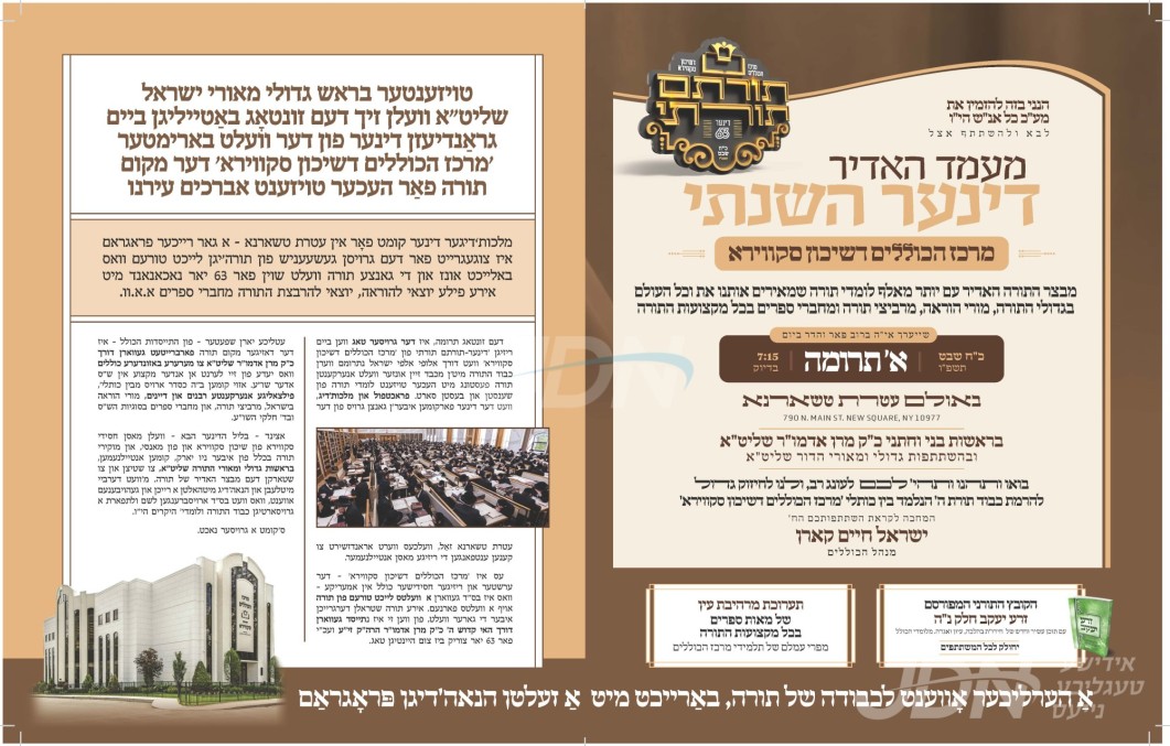 היינט קומט פאר די יערליכע דינער לטובת מרכז הכוללים ד'שיכון סקווירא, אין זאל פון עטרת טשארנא אין שיכון סקווירא.