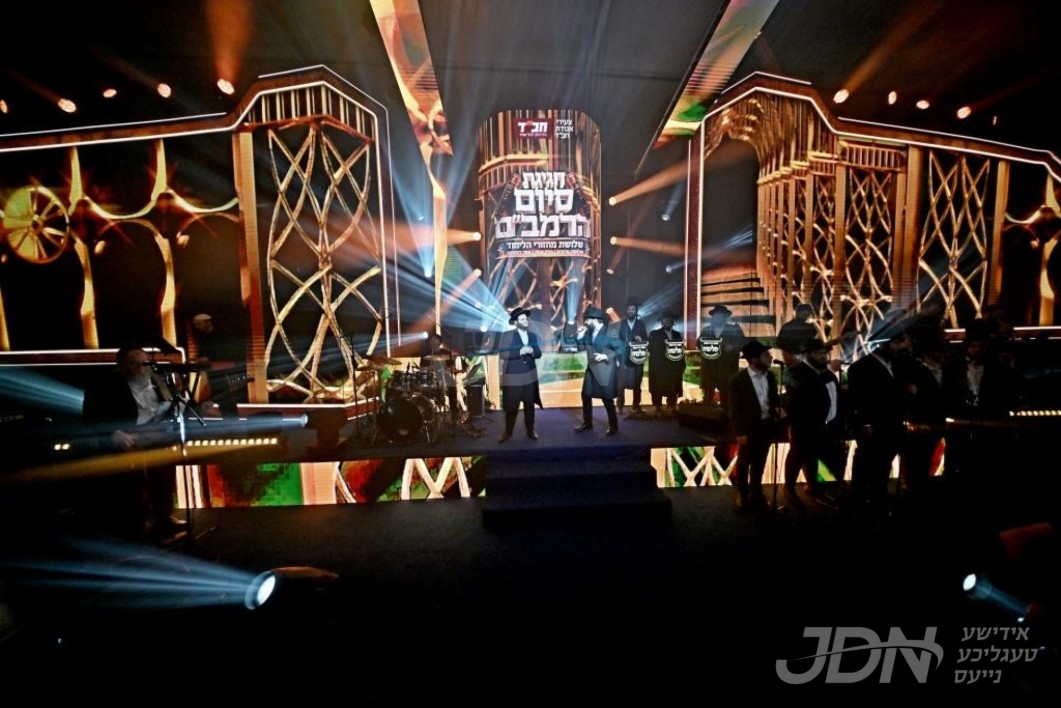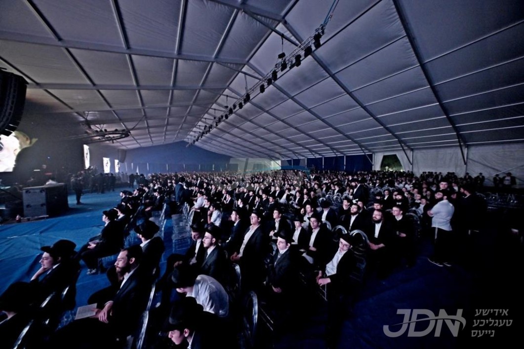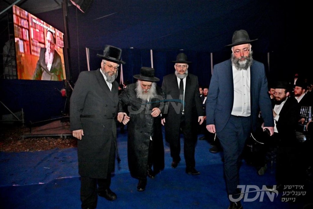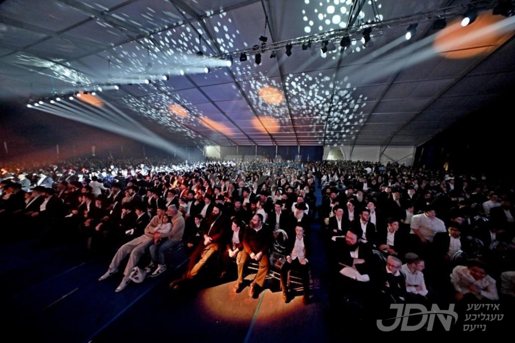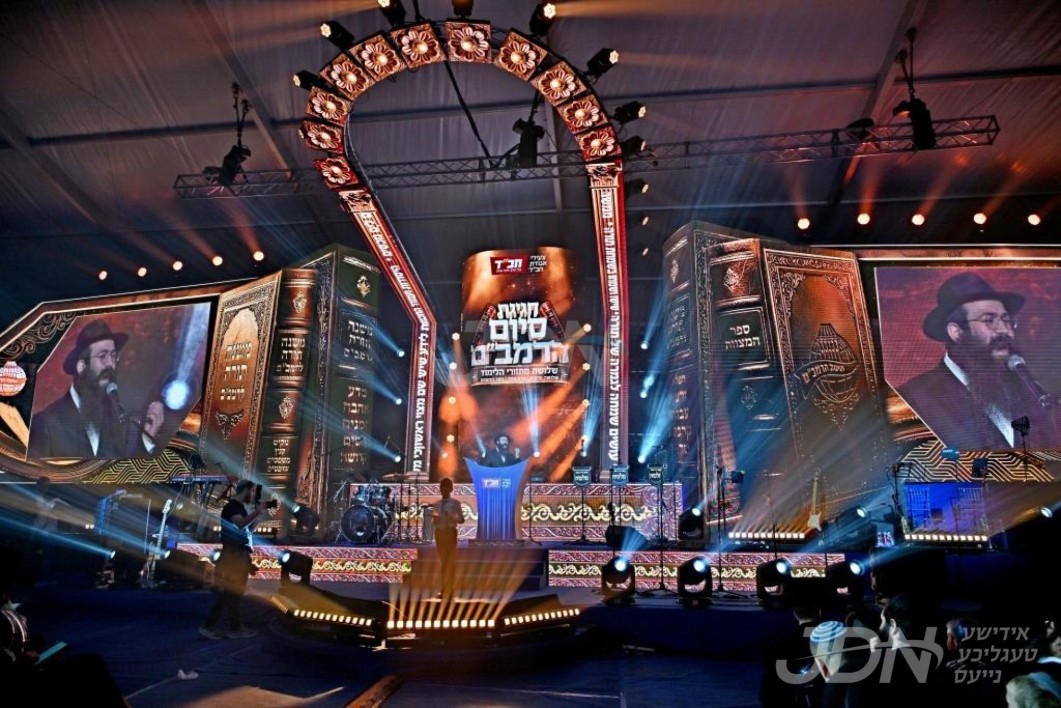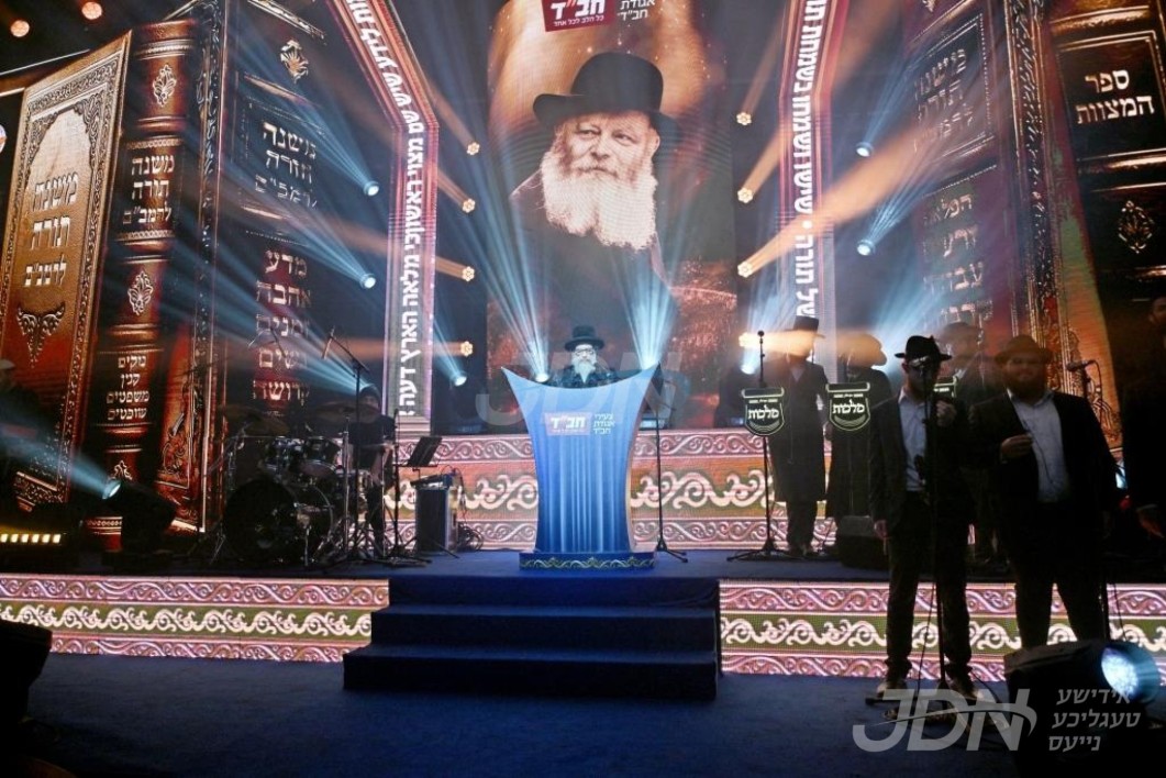 טויזענטער אידן ביים גרויסן "סיום הרמב"ם" אין די קראון הייטס ארמארי, האדמו"ר מצאנז קלויזענבורג אויפגעטרעטן מיטן משא המעמד