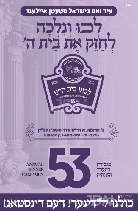 היינט קומט פאר די יערליכע דינער לטובת ביהמ"ד קהל אגודת שומרי הדת גרויסווארדיין אין סטעטן איילענד, אין זאל פון ביהמ"ד שומרי הדת, אין שפיץ פון די רבני העיר.