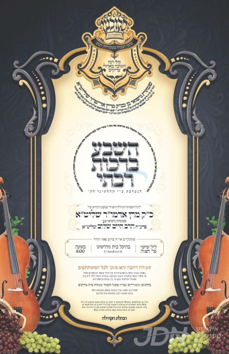 שמחת בית סקולען: היינט קומט פאר די שמחת השבע ברכות פונעם חתן א זון פון כ"ק אדמו"ר מסקולען שליט"א פון וויליאמסבורג, מיט די כלה א טאכטער פון הגה"צ ר' יעקב יוסף גאלדמאן שליט"א דומ"ץ ביהמ"ד סקווירא אויף ראמען אין מאנסי, זון פון הגה"צ ר' שמואל גאלדמאן שליט"א מזוועהיל, און איידעם ביי הגה"צ ר' יוחנן וואזנער שליט"א ראב"ד סקווירא. – די שמחת השבע ברכות קומט פאר אין ביהמ"ד מאור ישראל סקולען אין וויליאמסבורג.