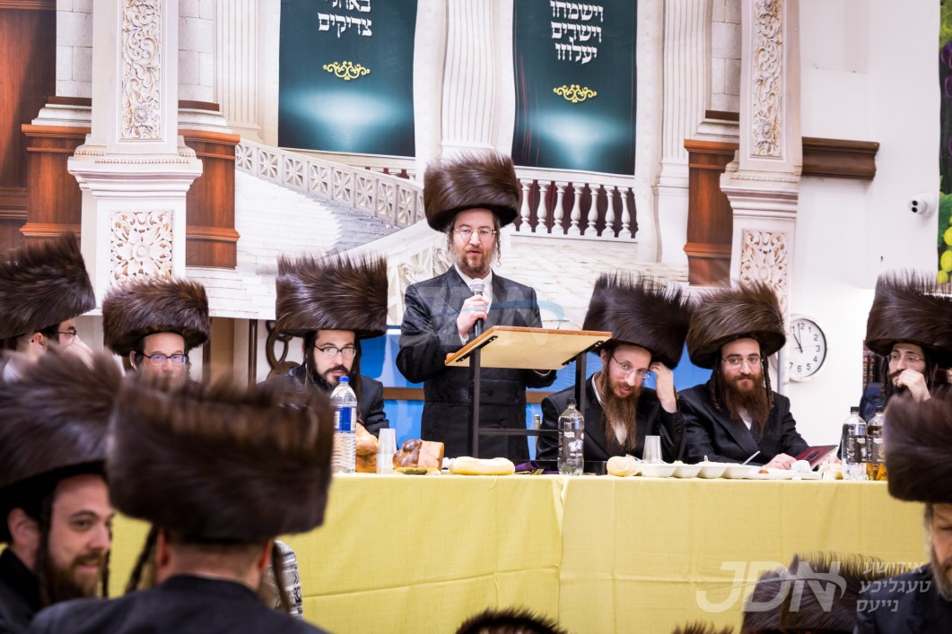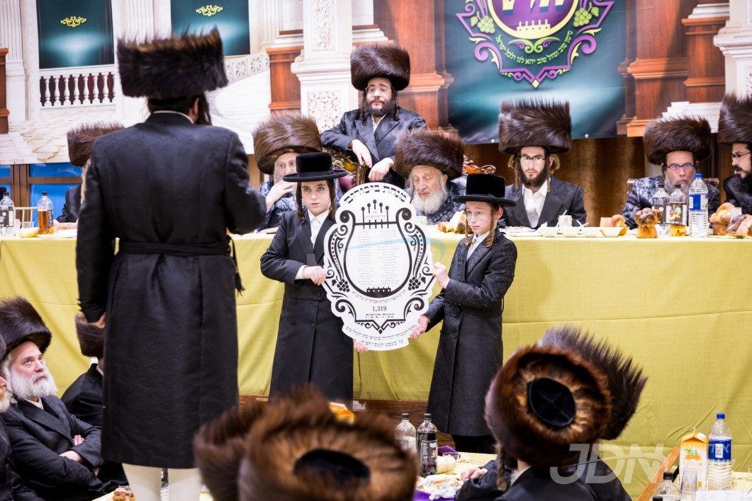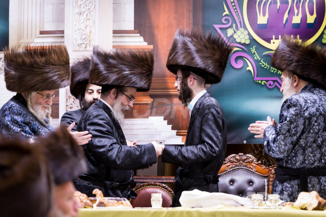 שמחת השבע ברכות אין שטוב פון האדמו"ר ממונקאטש לכבודו פון הרב משה מארגארעטען יו"ר ארגון צדק מיט די באטייליגונג פון מערערע אדוואקאטן לאות הכרת הטוב פאר אלע פדיון שבויים אקטיוויטעטן