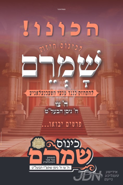 היינט קומט פאר די כינוס "שמרם" פאר כלל בחורי סקולען אין לעיקוואד, זיך צו מחזק זיין קעגן די פגעי הטעכנעלאגיע, עס קומט פאר אין סקולענער בית המדרש אין לעיקוואד, אין שפיץ פון כ"ק אדמו"ר מסקולען שליט"א פון לעיקוואד וועלכער וועט משמיע זיין דברות קודש ודברי חיזוק.
