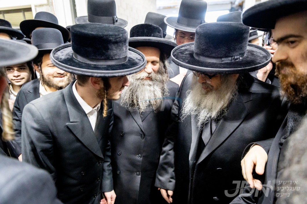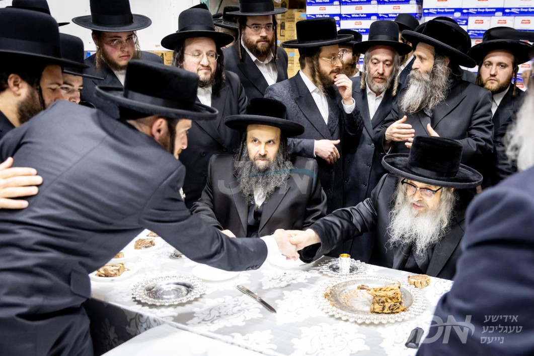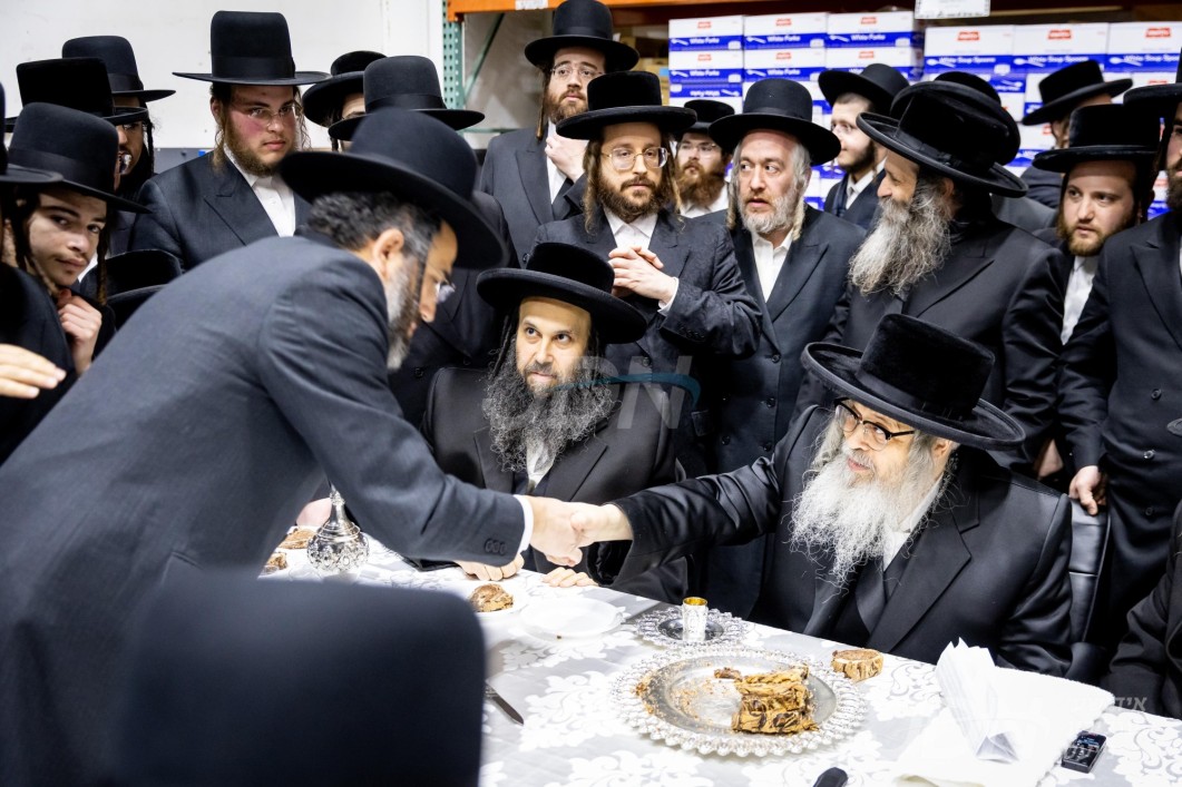 האדמו"ר מסאטמאר ביים קביעת מזוזה אין די נייע פראכטפולע העריטעדזש זילבער געשעפט אין די דאבעליו מאלל אין וויליאמסבורג