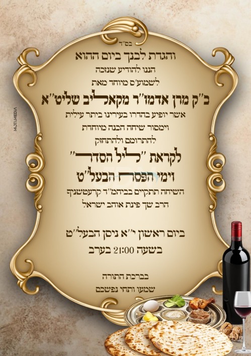 כ"ק אדמו"ר מקאליב ארה"ק שליט"א וועט היינט נאכט אנקומען קיין ביתר, און אויפטרעטן מיט א שמועס לקראת יו"ט פסח הבעל"ט, אין ביהמ"ד קרעטשניף אויף רחוב הרב שך.