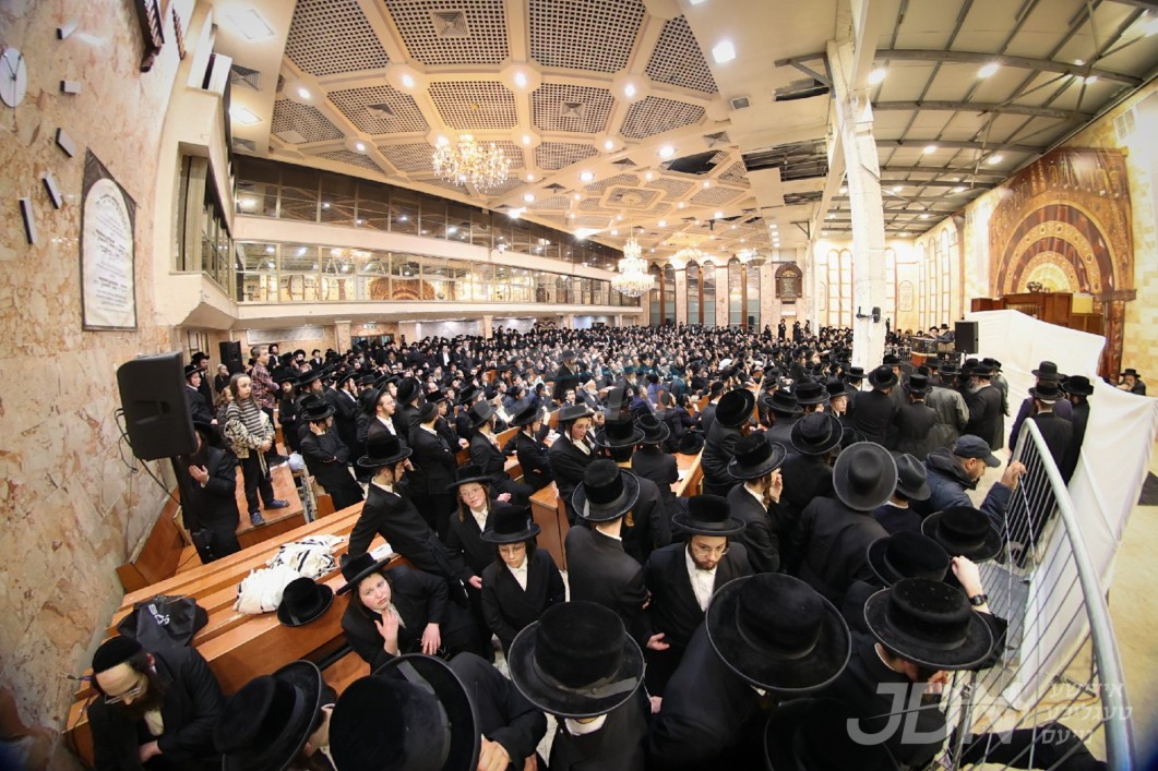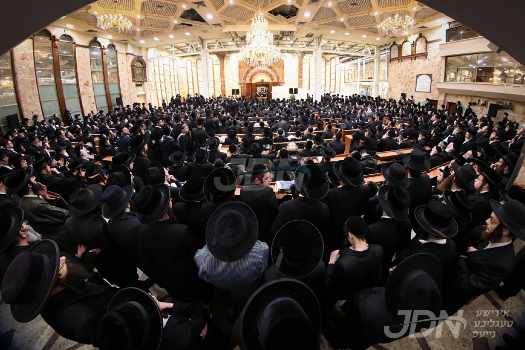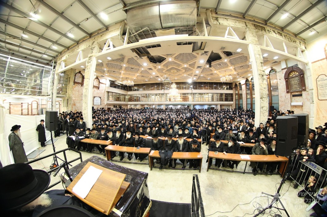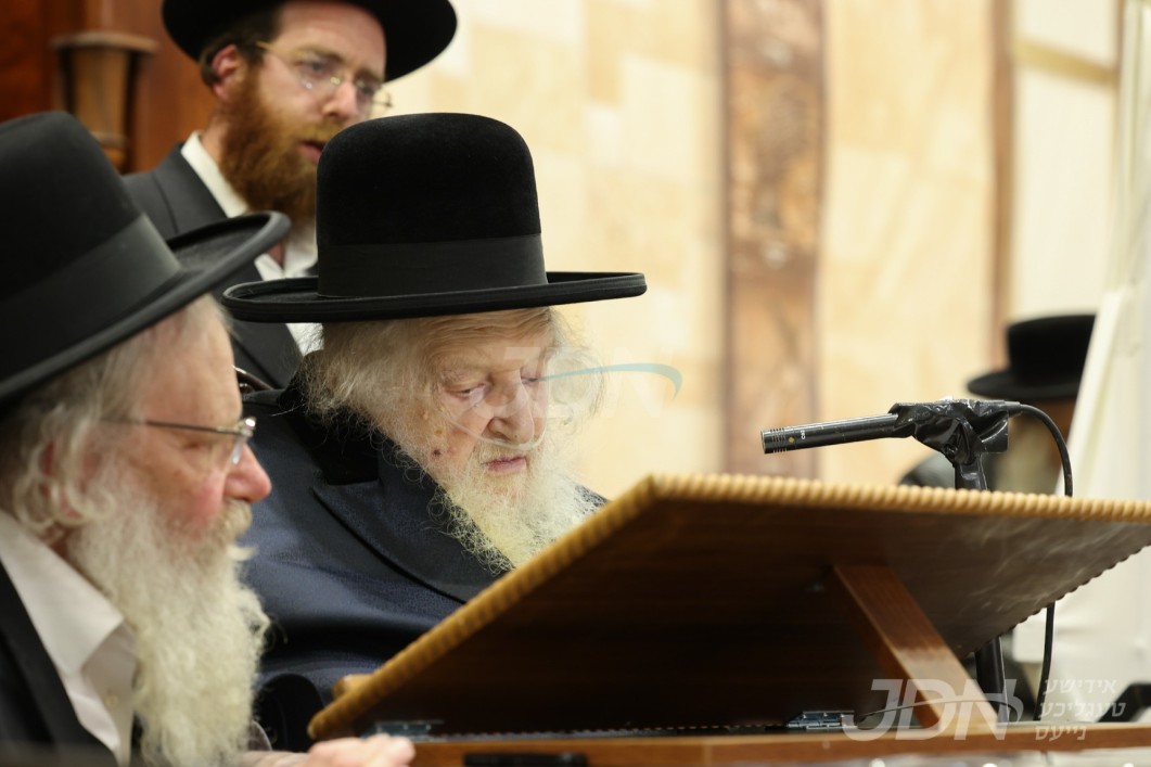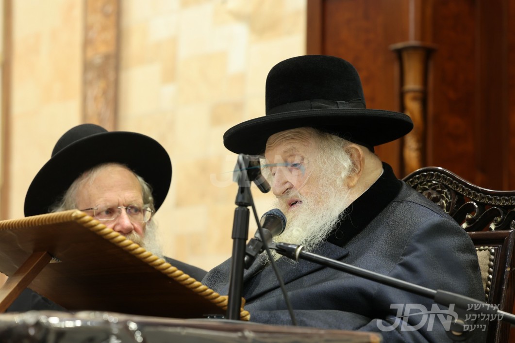 האדמו"ר מסאטמאר ביי די שיעורי סוגיא אין היכל הישיבה אין קרית יואל לקראת די שבת הגדול דרשה