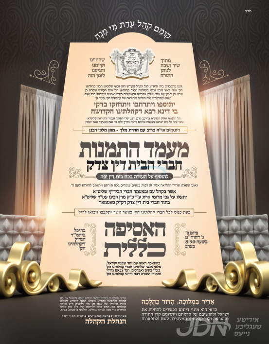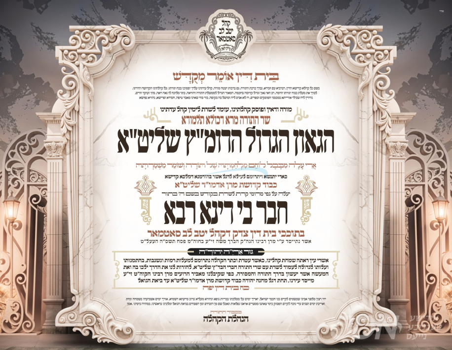 בחצר הקודש סאטמאר ווערט געמאלדן די טעג איבער א גרויסער מעמד התמנות וואס וועט פארקומען בעז"ה דעם חול המועד פסח, ווען עס וועלן ווערן אויפגענומען פרישע חברי ביד"ץ אין די סאטמארער בית דין, צו שטיין על המשמר אויף די קהילה קדושה אין אלע רוחניות'דיגע אנגעלעגנהייטן.