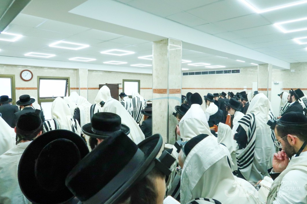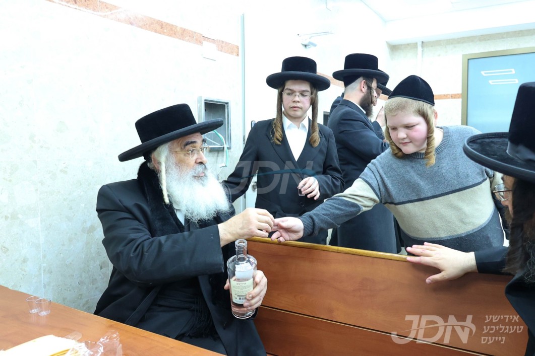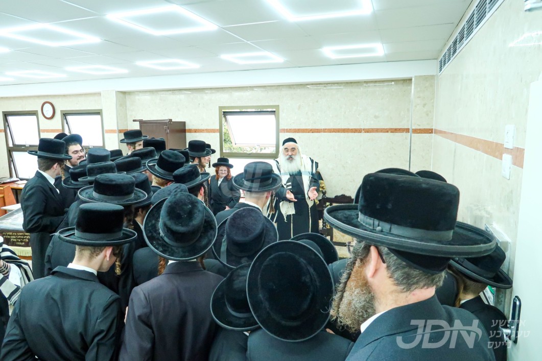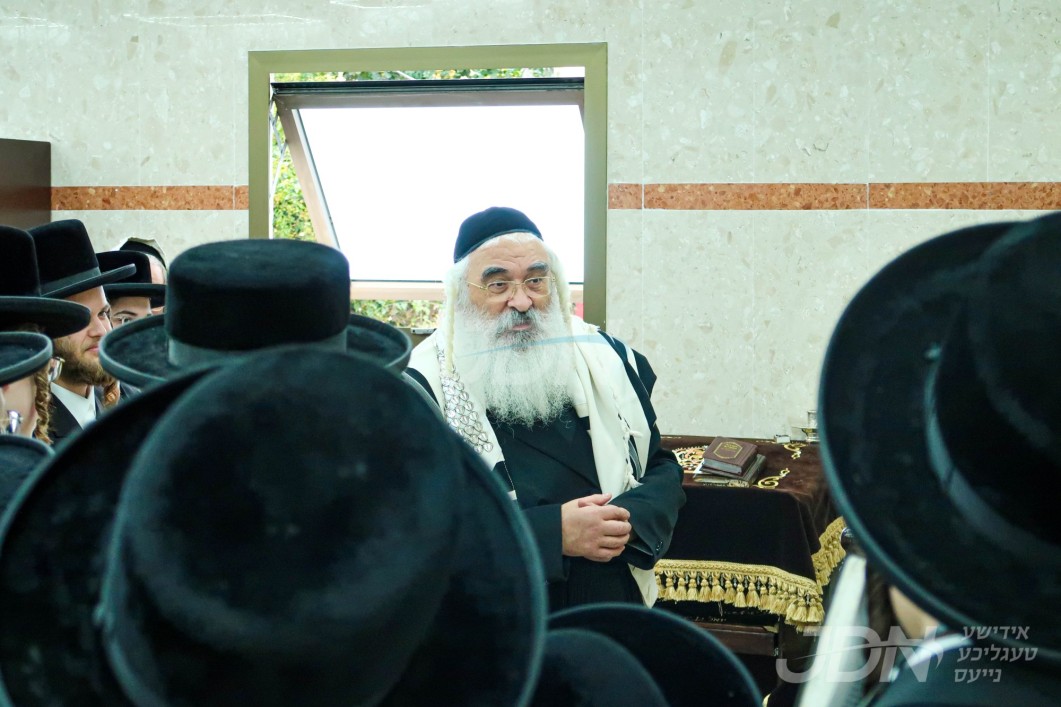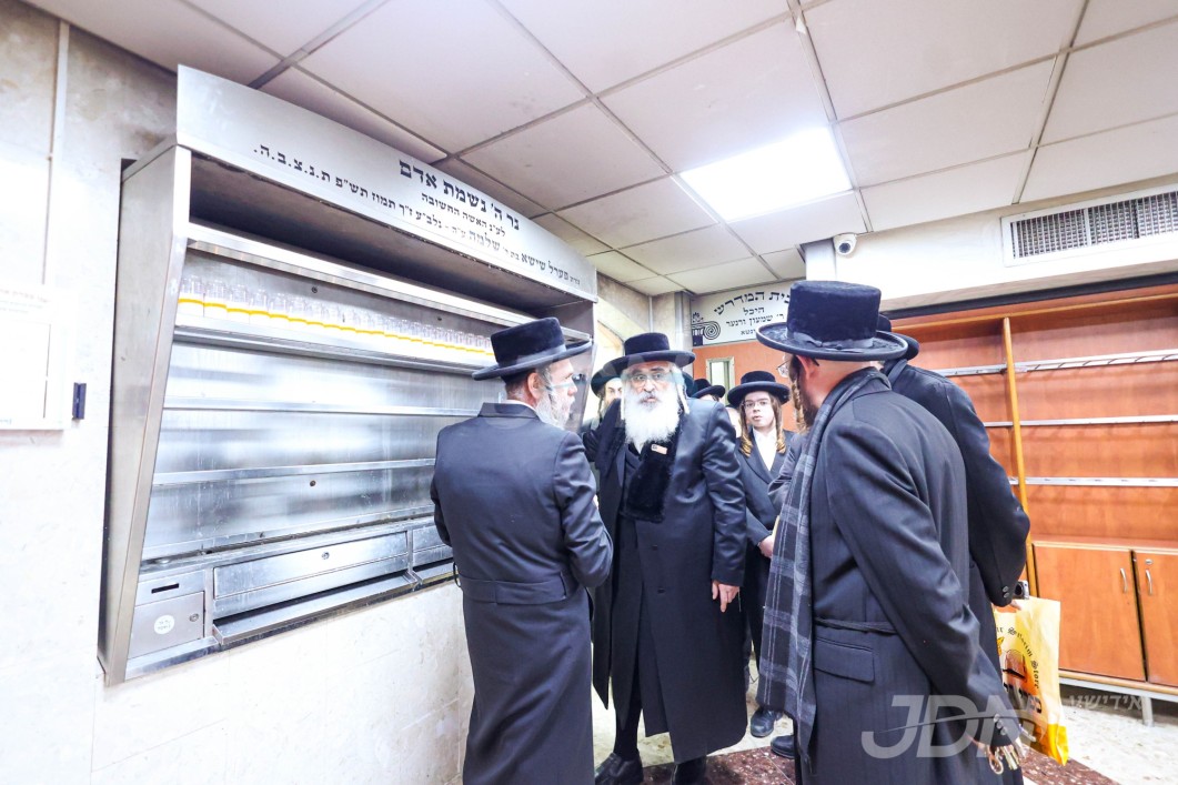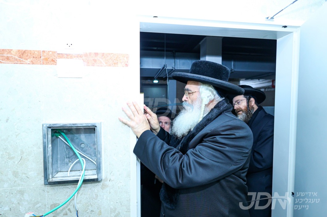האדמו"ר מסאטמאר ביים קביעת מזוזה אין די נייע מיטב האולסעיל גראסערי אין וויליאמסבורג