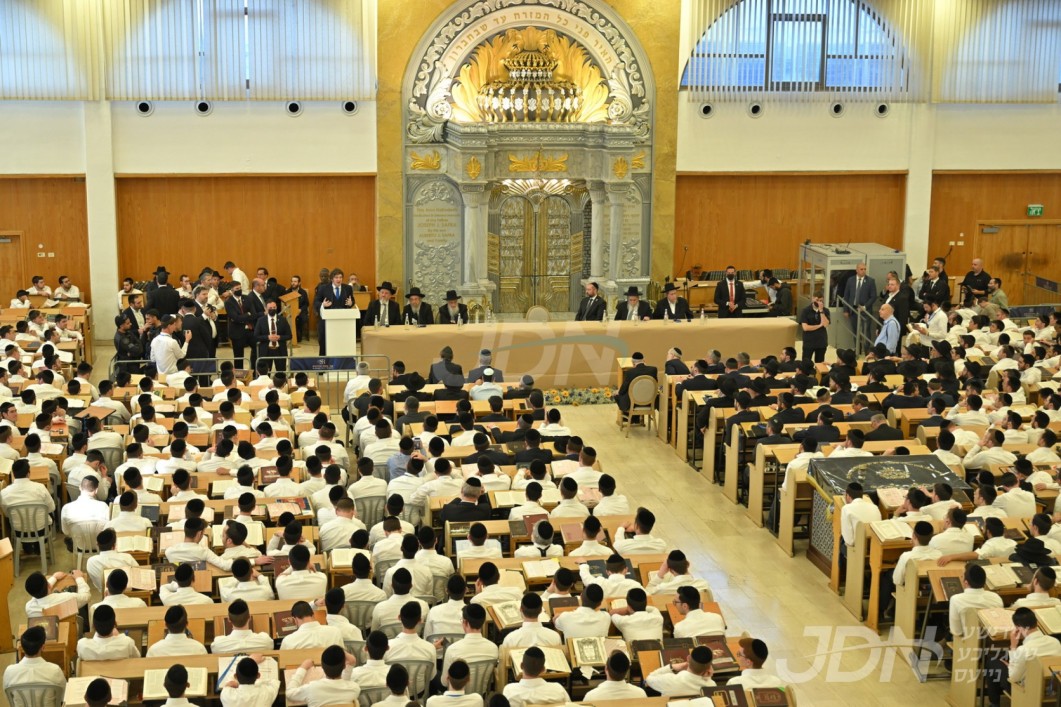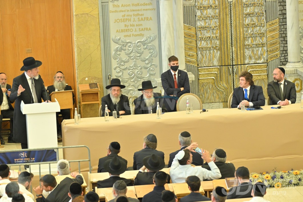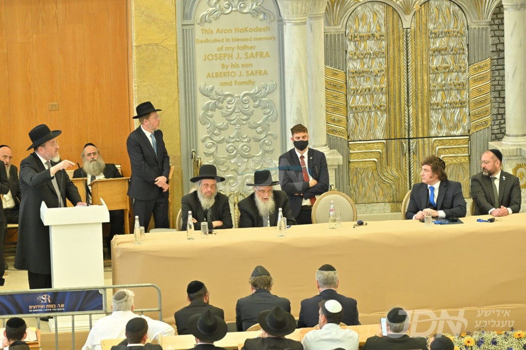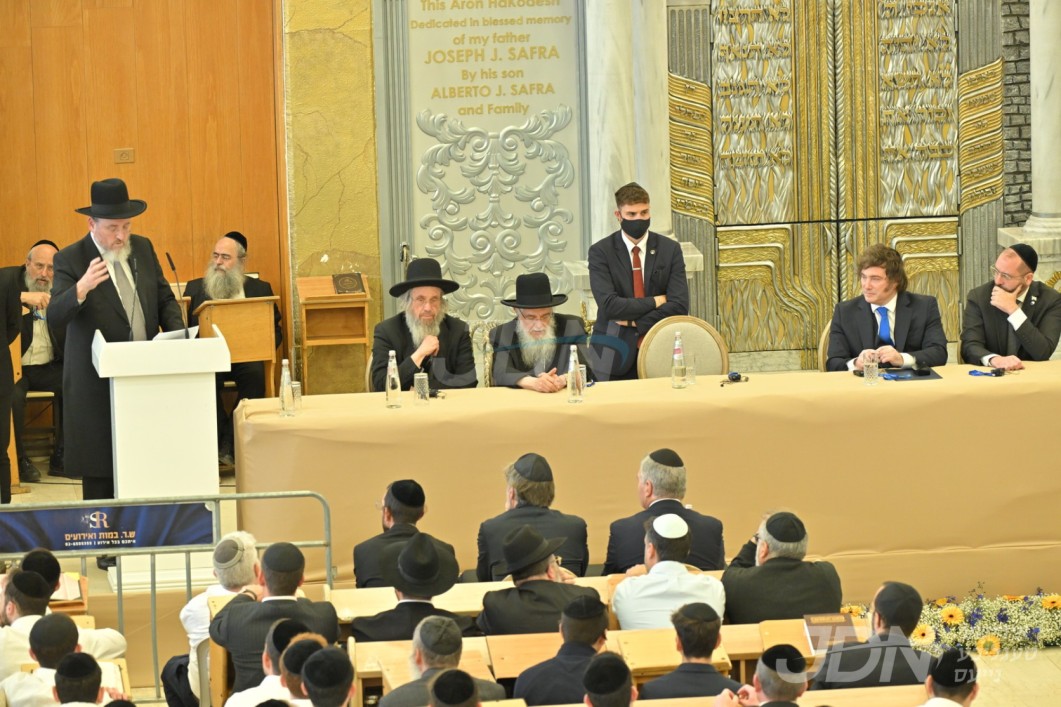 צוערשט האט אויפגעטרעטן הרב יוסף חברוני שליט"א מרביץ תורה אין ישיבה, וועלכער האט ווארעם באגריסט דעם עהרנפולן גאסט, און דערנאך האט דער פרעזידענט פון ארגענטינע אויפגעטרעטן מיט רירנדע ווערטער אויסלויבענדיג די אידישע פאלק און לומדי תורה בפרט.