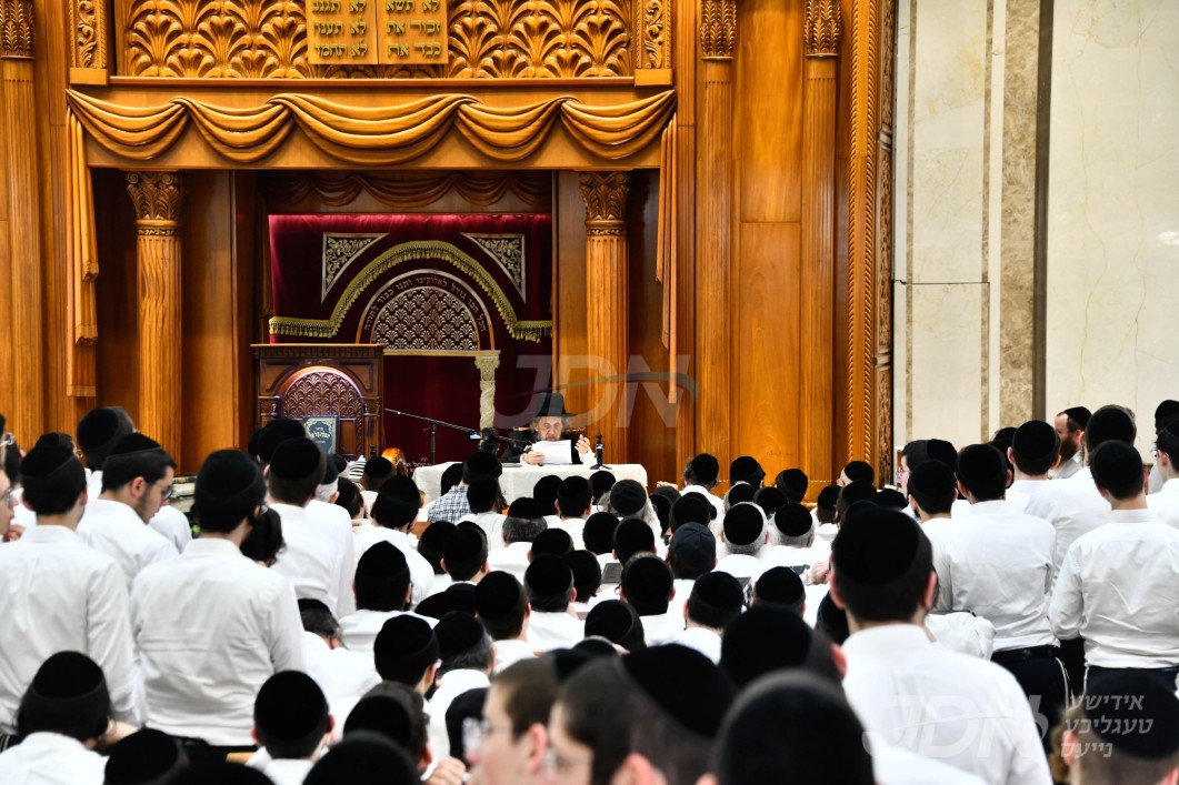 האדמו"ר מקאסאן ביים פארהערן די תלמידים פון ישיבת כתר תורה חצי מס' גיטין בעל פה